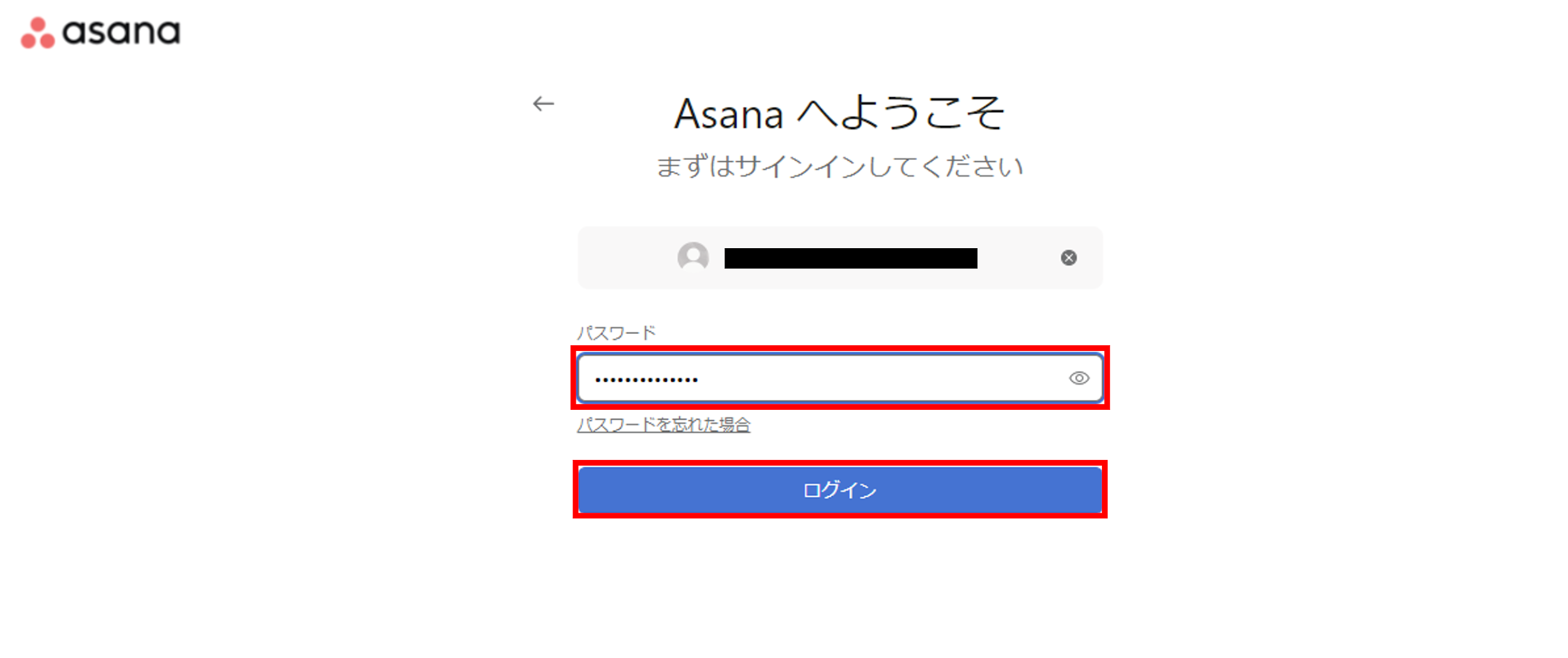 画面が切り替わり、Asanaと連携するアカウント情報が合っているかを確認します。