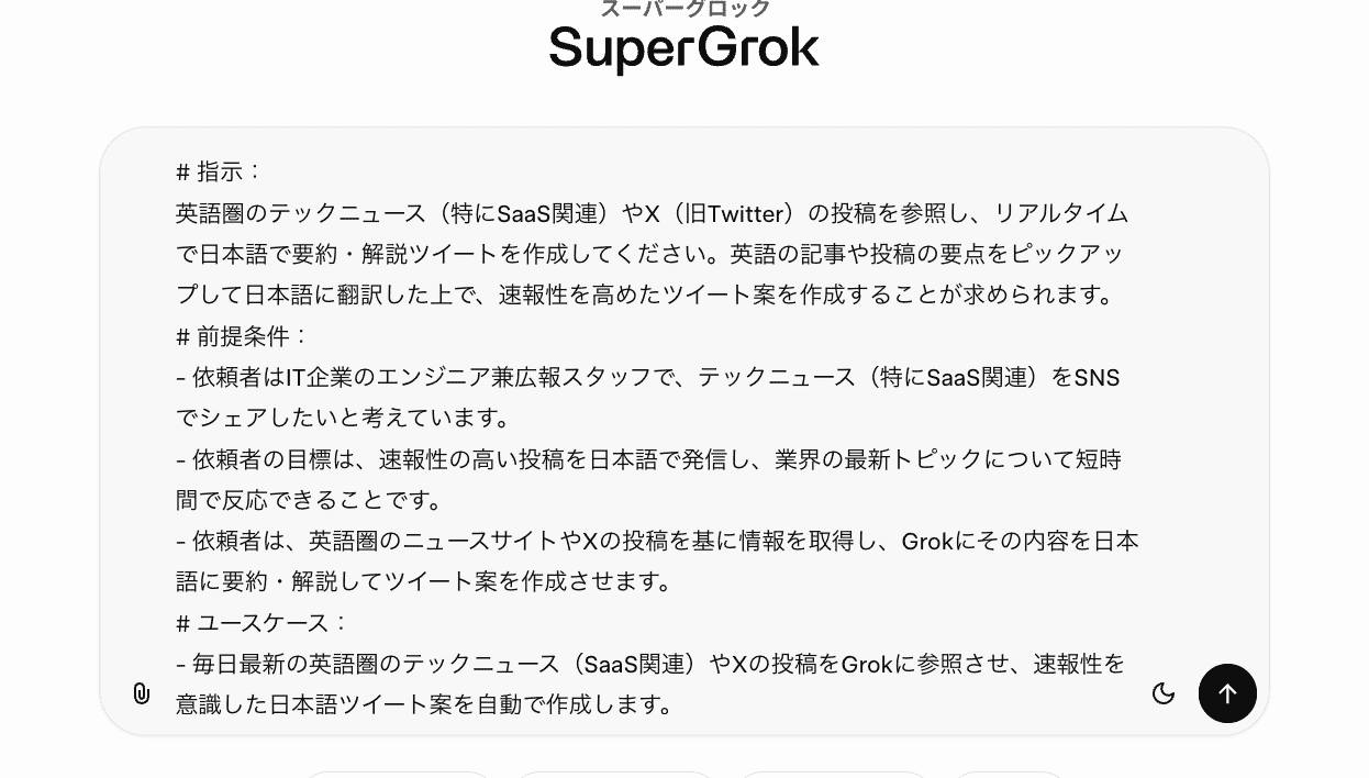 次は、IT企業エンジニア兼広報スタッフが、英語圏のテックニュースサイトをソースにし、Grokに日本語で要約・解説ツイートを作成させる、というシーンを想定した検証を行ってみます。