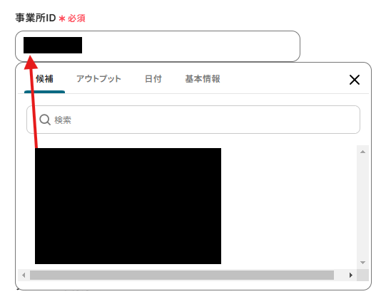 「事業所ID」は、入力欄をクリックして表示される候補から選択してください。
