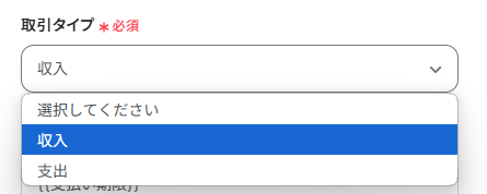 「取引タイプ」は、プルダウンから選択してください。