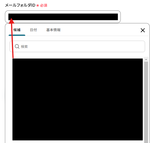 3.「メールフォルダID」は、入力欄をクリックして表示される候補から選択してください。