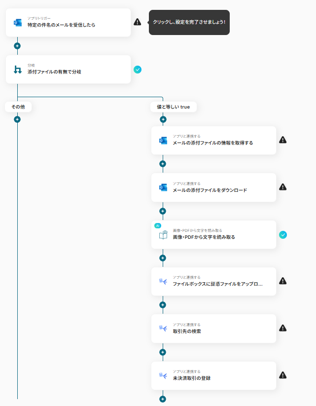 1.分岐「添付ファイルの有無で分岐」をクリックしてください。