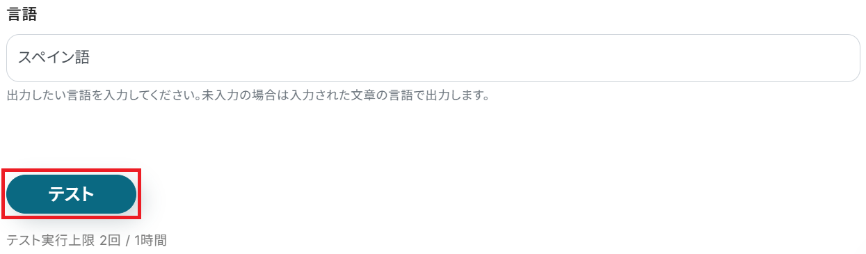 ステップ4と同様に進めて、翻訳したい言語を入力してテストしてください。