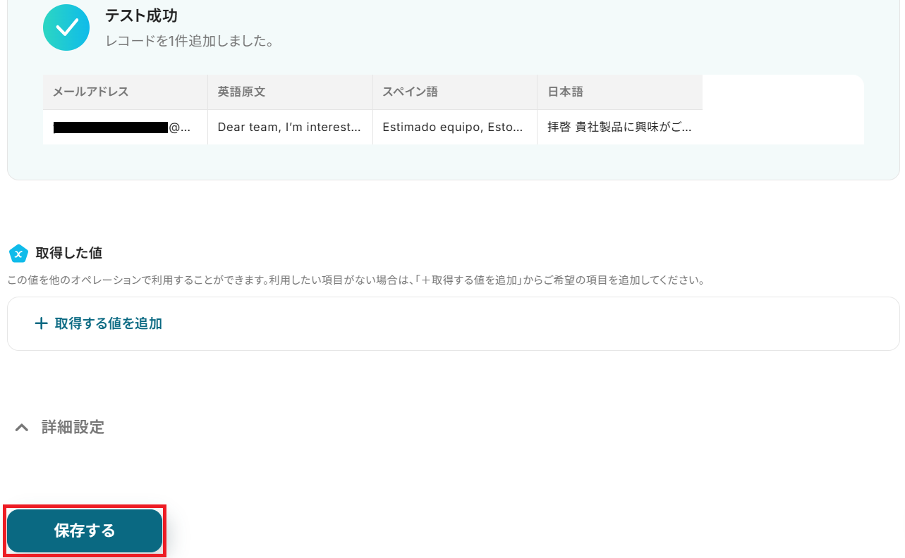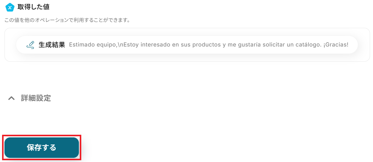 成功したら保存しましょう。AIがスペイン語に翻訳してくれました!