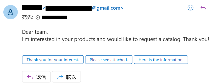 用意したシートにOutlookの問い合わせ内容と翻訳が自動で追記されました!