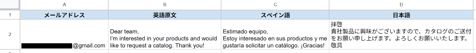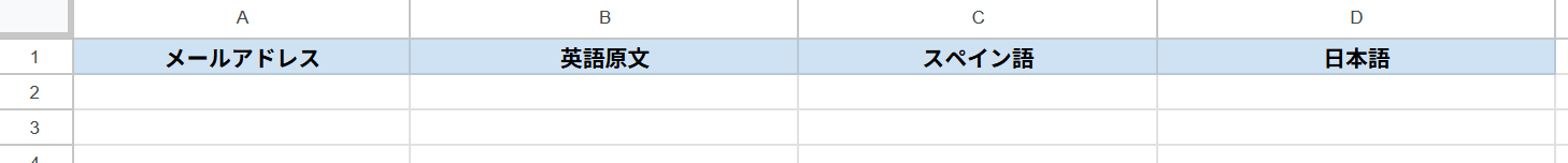 準備として、問い合わせ内容と翻訳を追記するためのGoogle スプレッドシートをご用意ください。