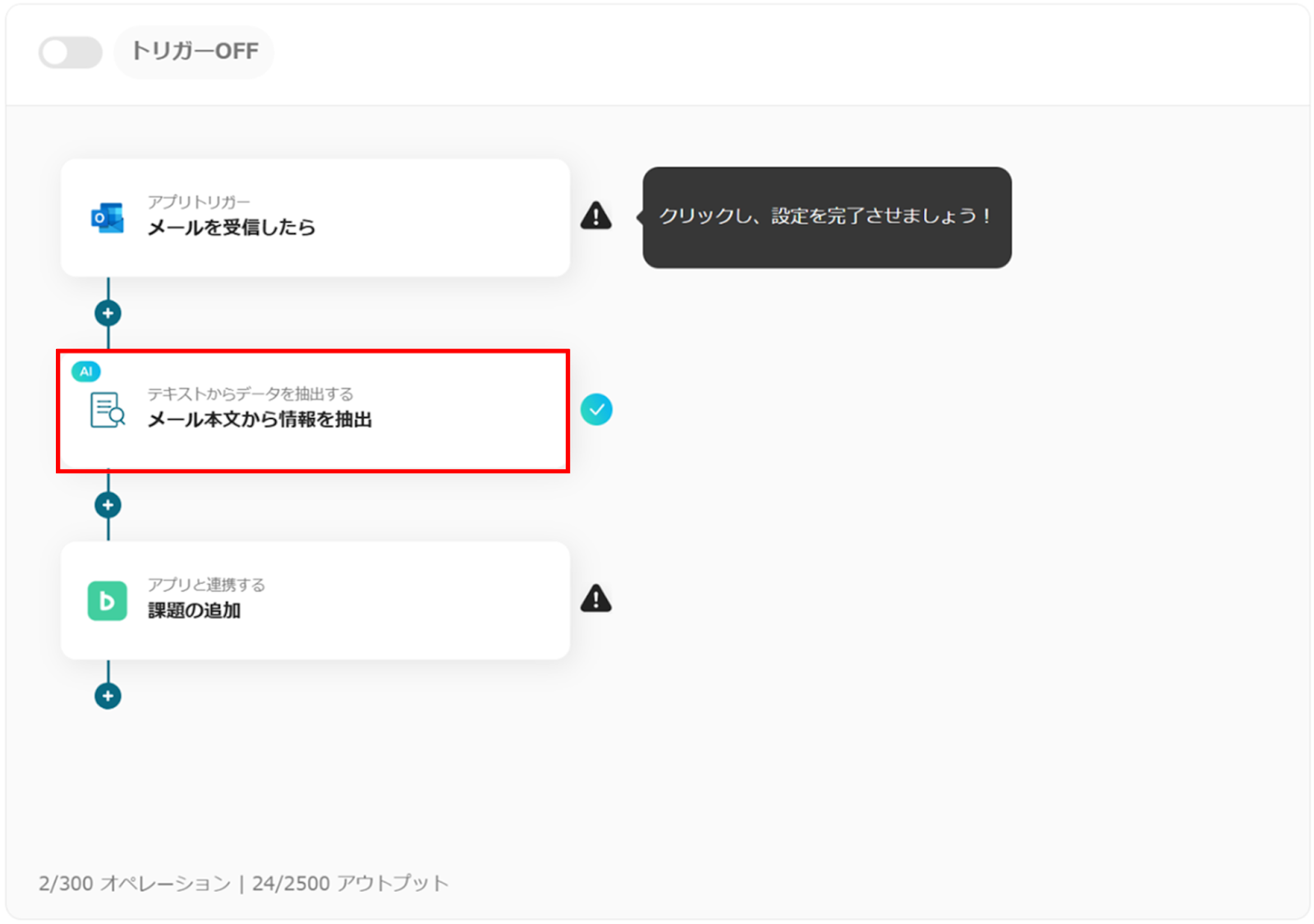 (1)次にAI機能を使ってメール本文から情報を抽出します。