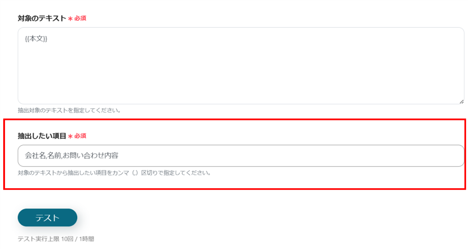 入力が完了したら、下部にある「テスト」をクリックし、エラーが発生しなければ「保存する」をクリックします。