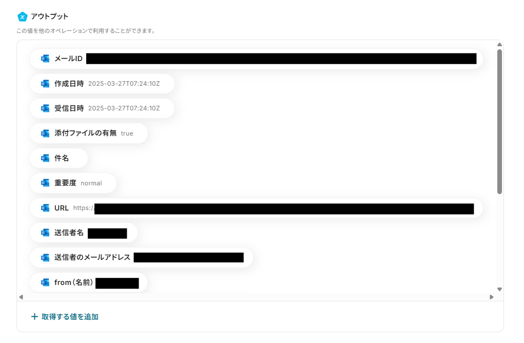 ステップ4:Outlookのファイル情報取得設定