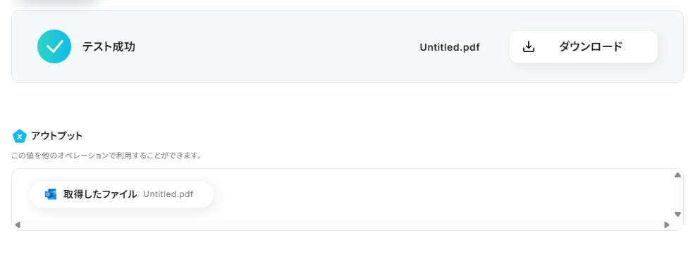 入力を終えたら「テスト」を実行し、ファイルが取得されたのを確認して「保存する」をクリックします。