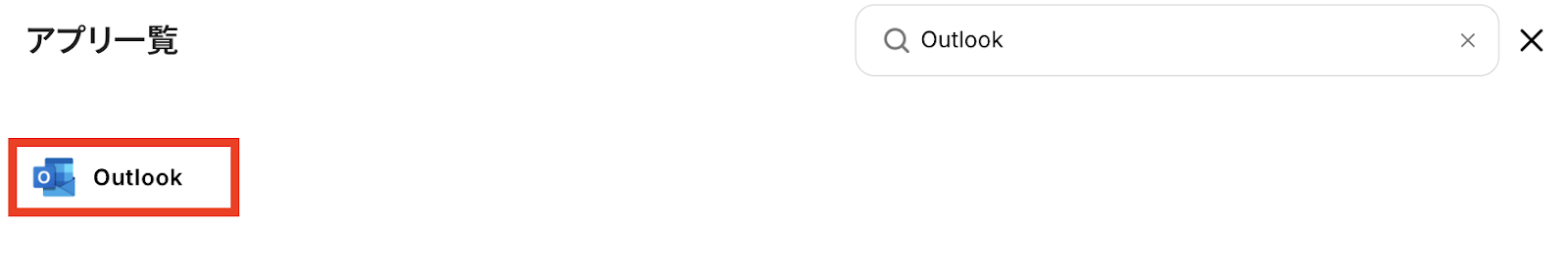 新規接続を押したあと、アプリのメニュー一覧が表示されるのでOutlookと検索し対象アプリをクリックしてください。