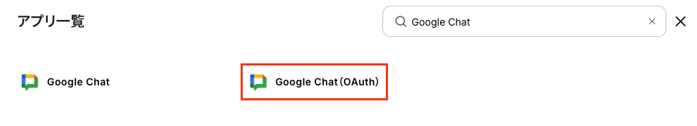 ※下記のように検索結果に2種類表示されますが、「Google Chat(OAuth)」の方を選択しましょう。