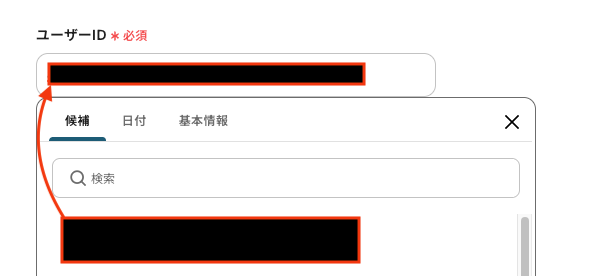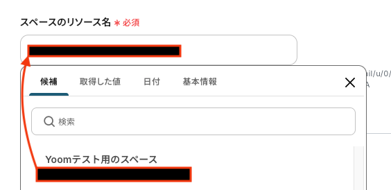 入力欄をクリックすると連携が有効になっているアカウントから候補が表示されるので、対象の項目を選択しましょう。
