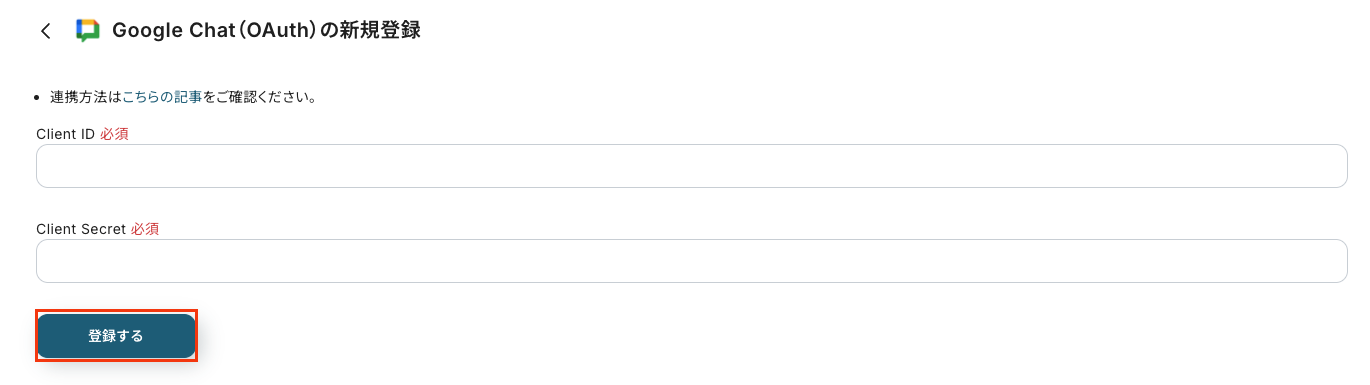 以下の画面が表示されたら、Client IDとClient Secretをそれぞれ入力し、「登録する」をクリックしましょう。