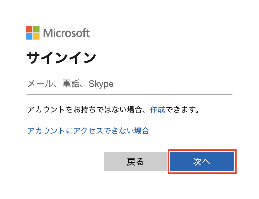 以下の画面が表示されたら、Microsoftアカウントでログインしてください。