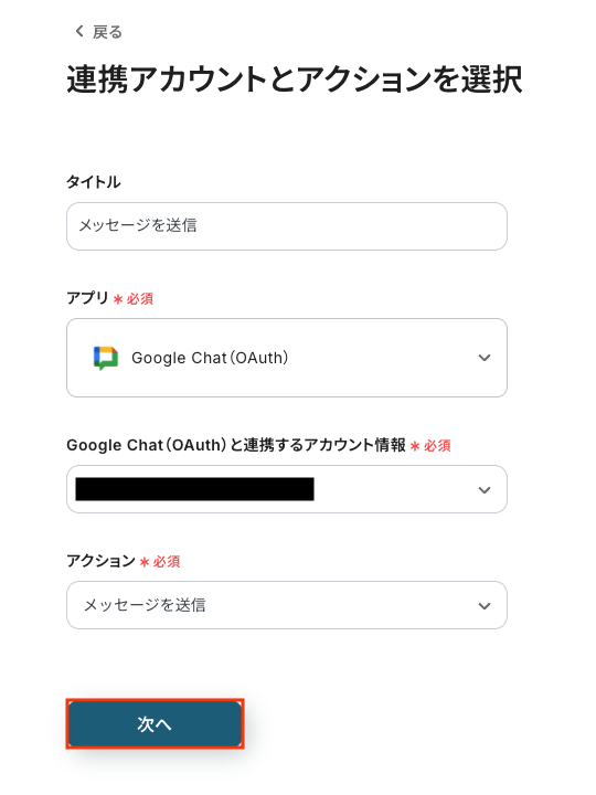 このとき表示される取得した値(=アウトプット)をもとに、後続のステップでGoogle Chatへの通知が可能になります。