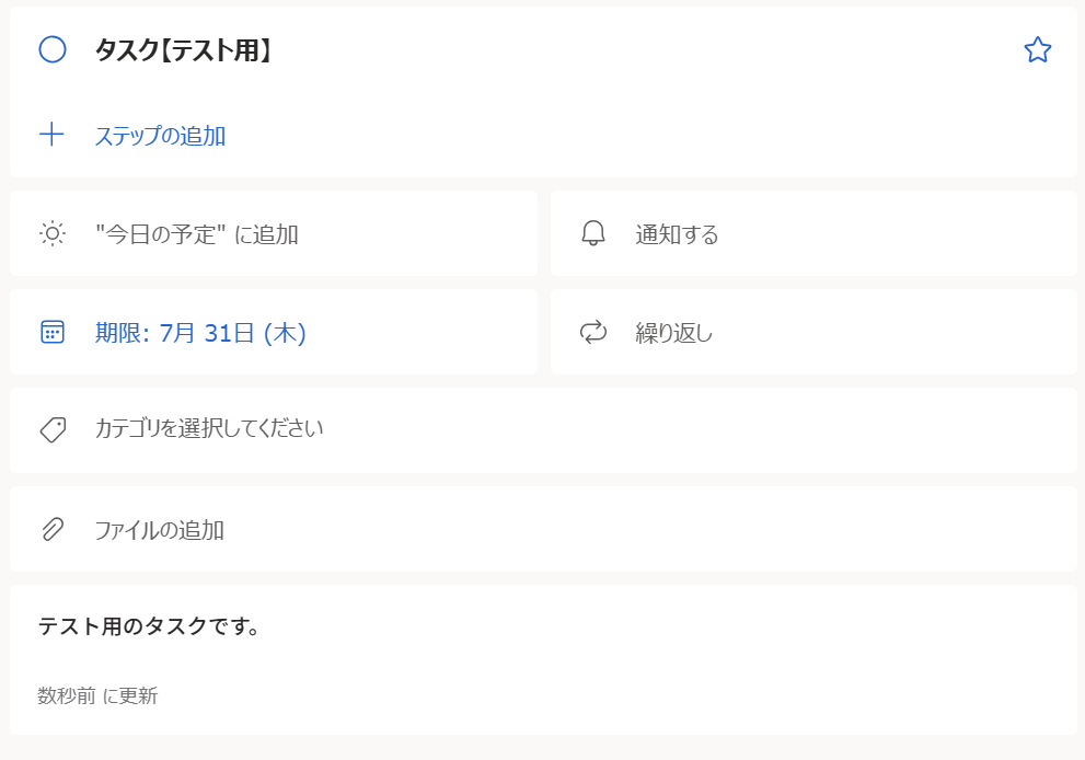 設定が終わったらテストのため、Outlookの画面でタスクを作成してみましょう!