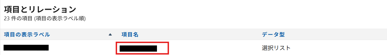 フィールド項目名:オブジェクトマネージャー内の「項目のリレーション」から確認が可能です。