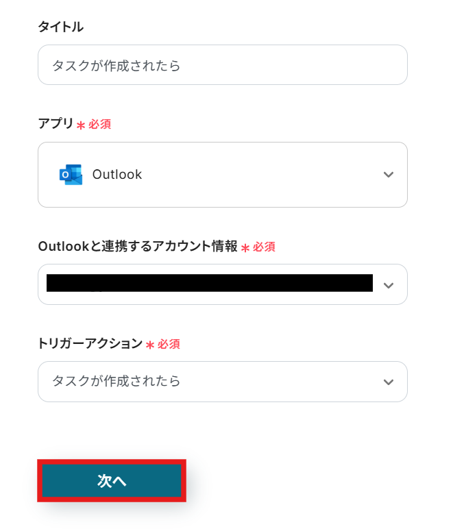 ステップ3:Outlookでタスクが作成されたら起動するトリガーの設定