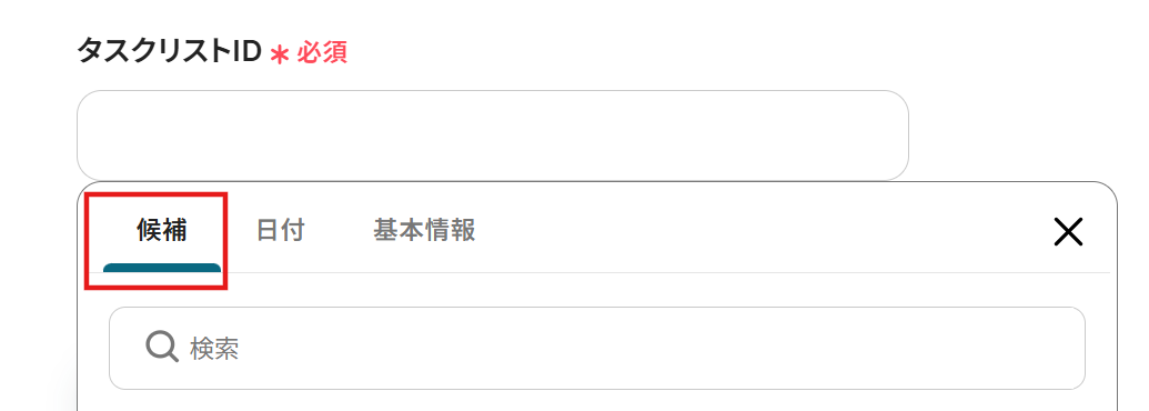 タスクリストID:入力欄をクリックし、候補の中から選択します。