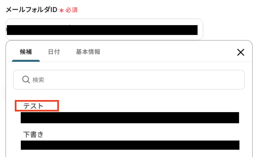 「メールフォルダID」は、入力欄をクリックして表示される候補から選択しましょう。ここで設定したフォルダにメールが入ると、フローが起動するようになりますよ!