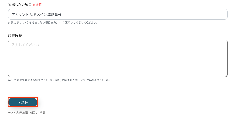 入力が完了したら、設定内容とトリガーの動作を確認するため「テスト」をクリックします。