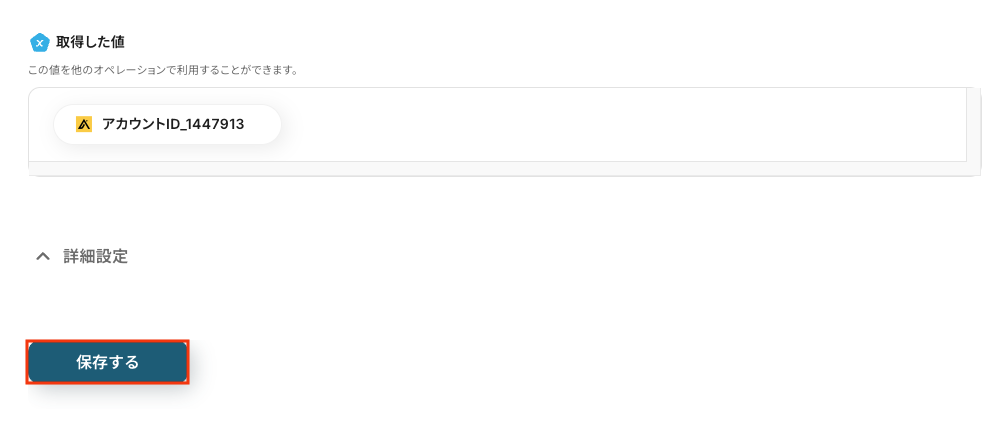 以下の画像の取得した値(=アウトプット)は後続のステップで利用可能です。