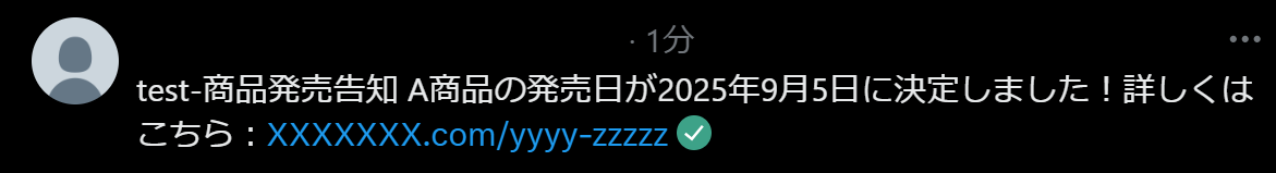 テストに成功すると以下のように表示され、X(Twitter)にポストが投稿されます。