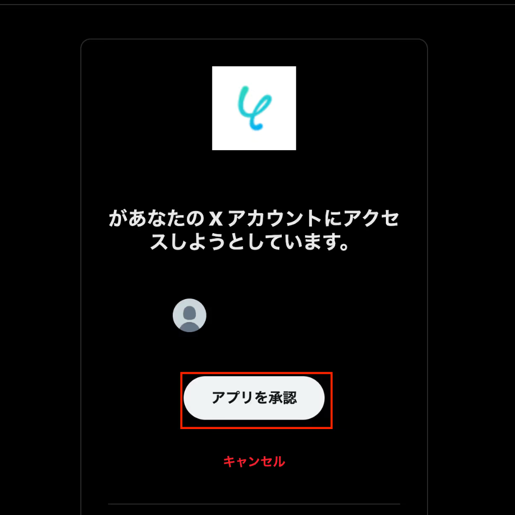 以下の画面から「アプリを承認」をクリックします。 これでX(Twitter)のアプリ連携は完了です!