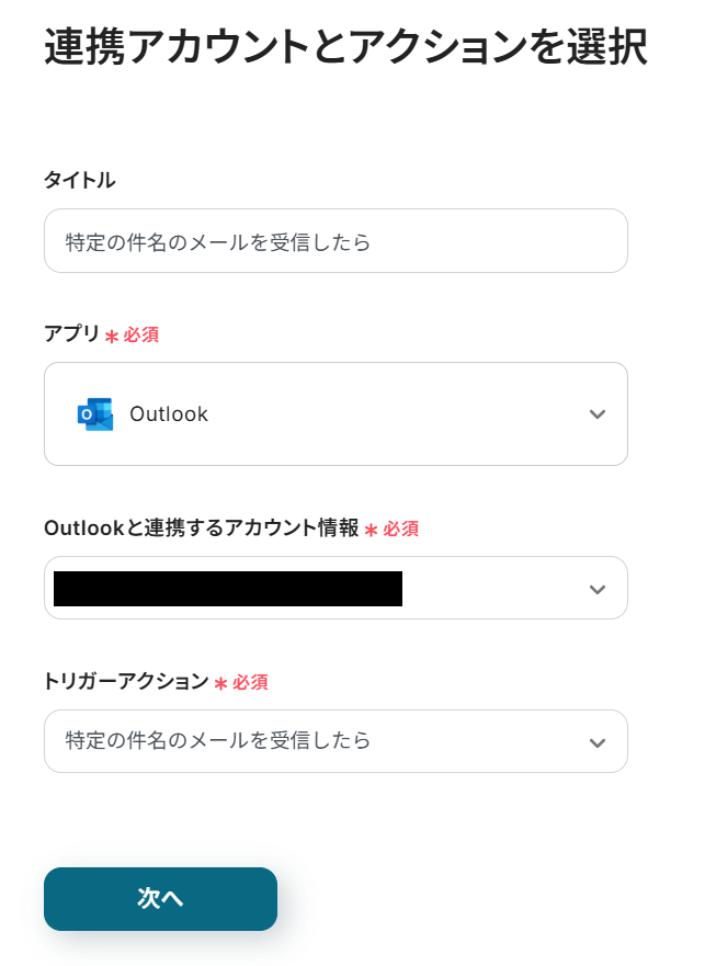 ステップ3:Outlookのトリガー設定