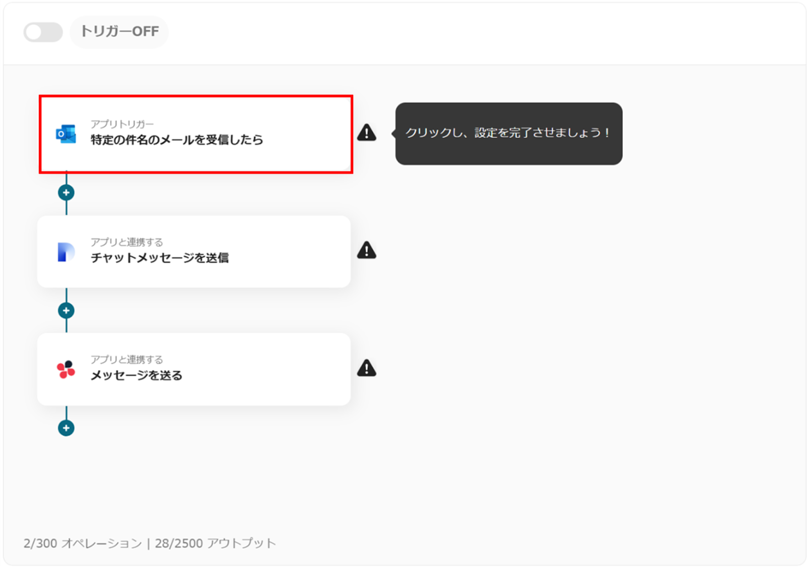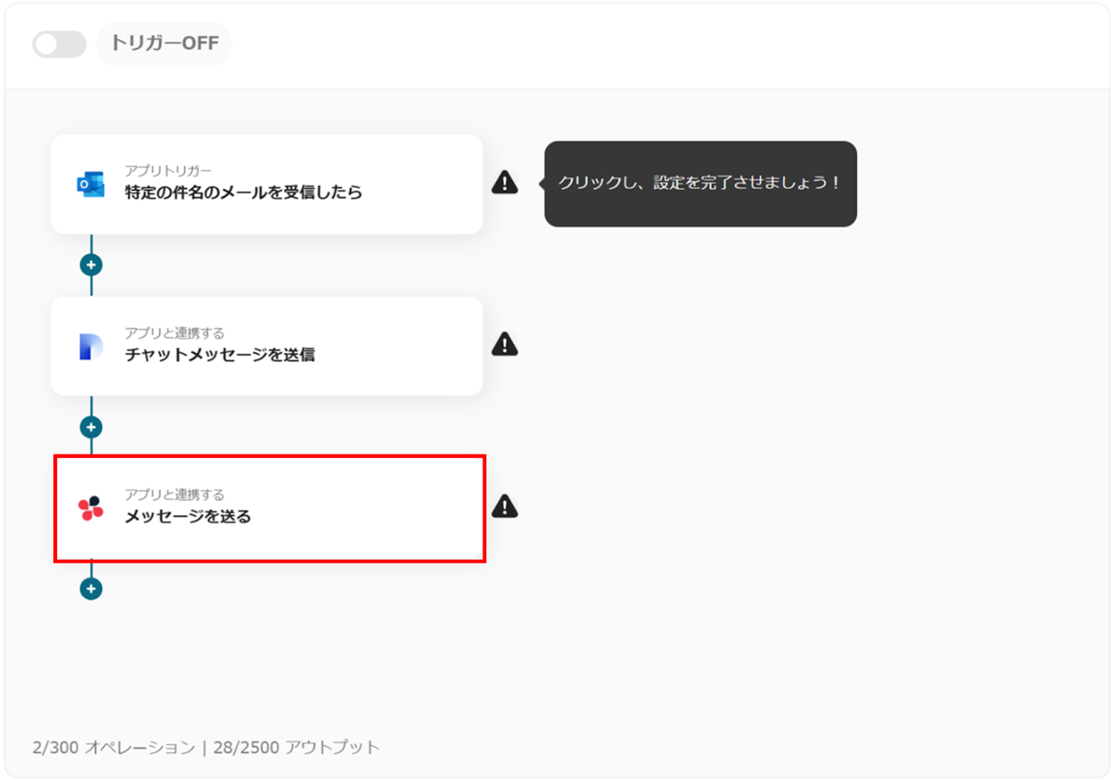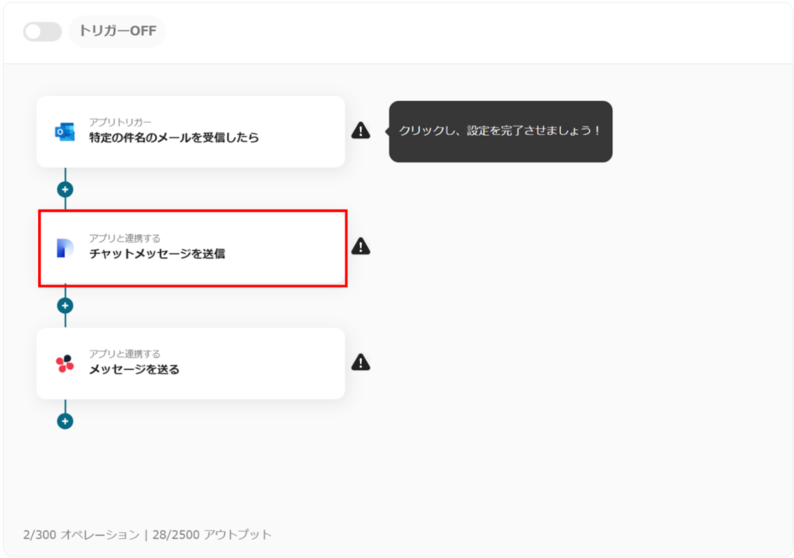 (1)次にChatworkと連携してメッセージの送信設定をします。