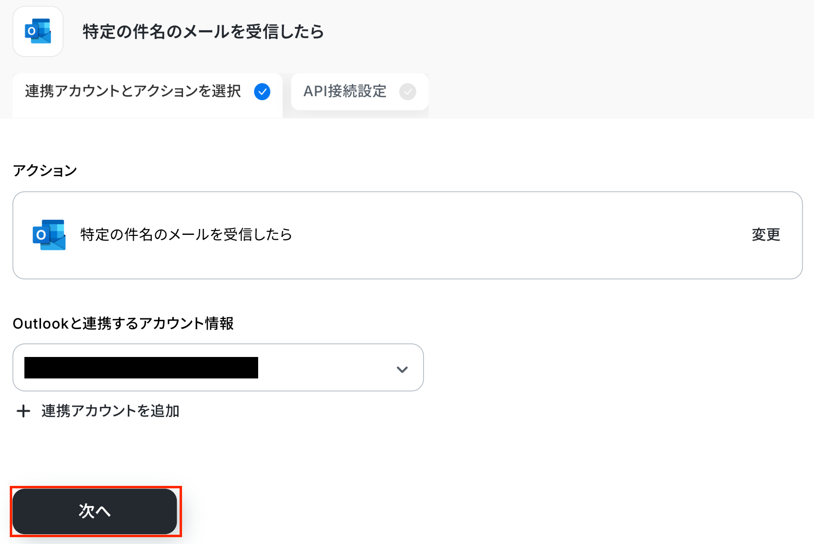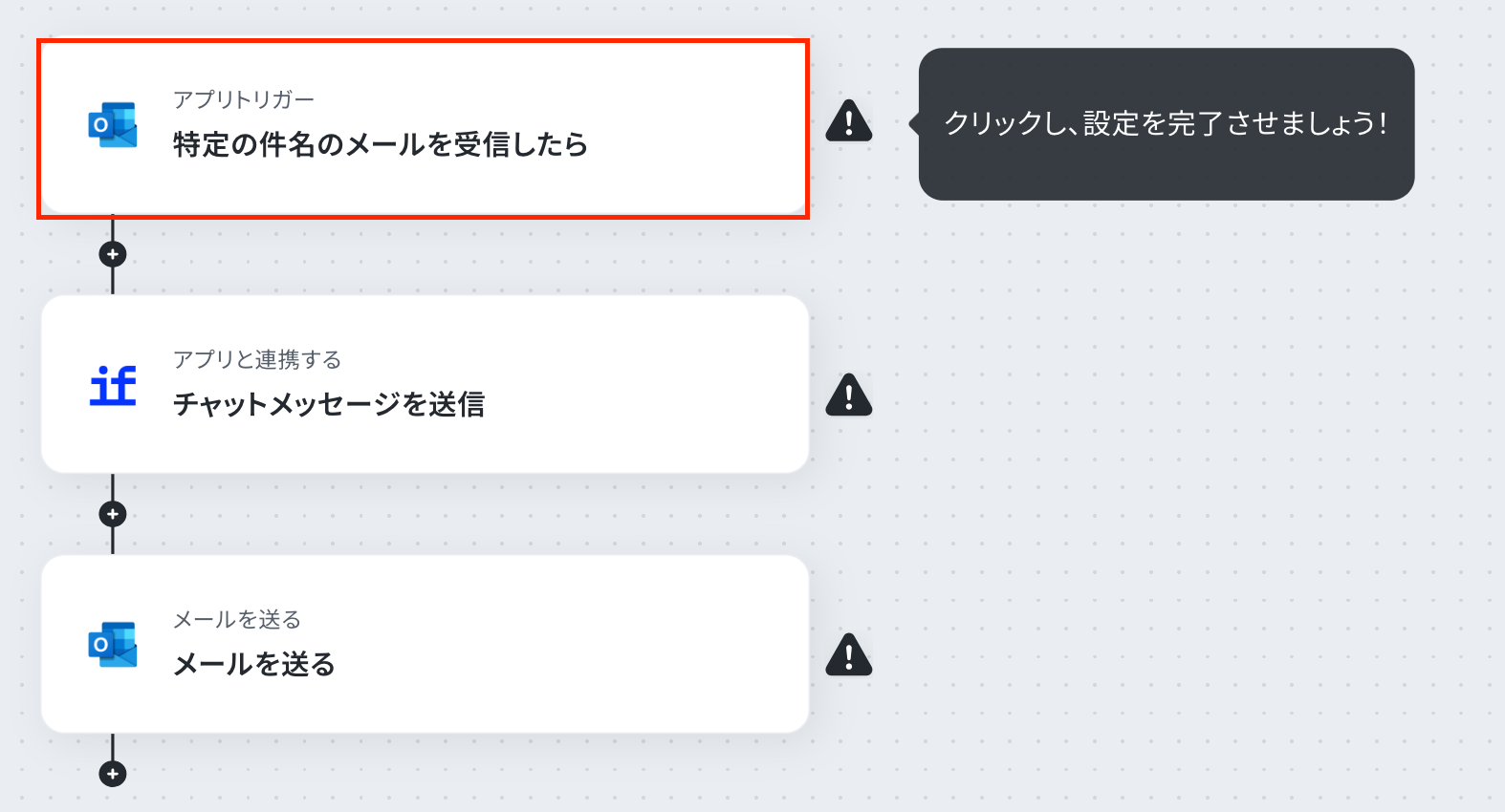 ステップ3:Outlookのトリガー設定 それでは、アプリトリガーを設定していきます。 「特定の件名のメールを受信したら 」を選択します。