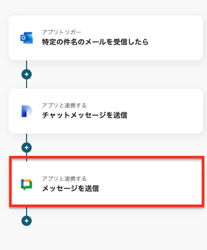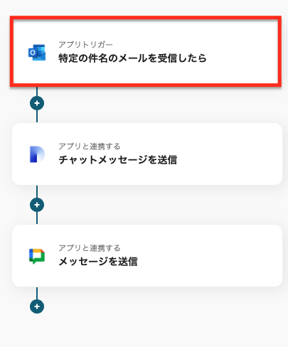 まず、OutlookとDify、Google Chatをマイアプリに連携します。