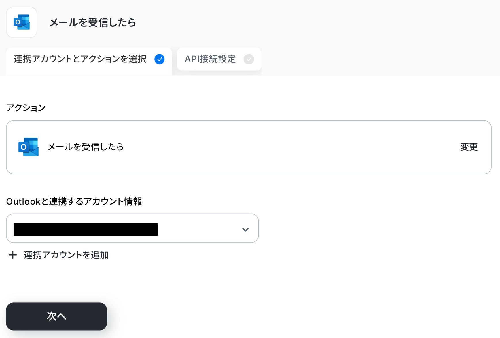 使用したいアカウントの情報を入力し、「次へ」をクリックしてください。