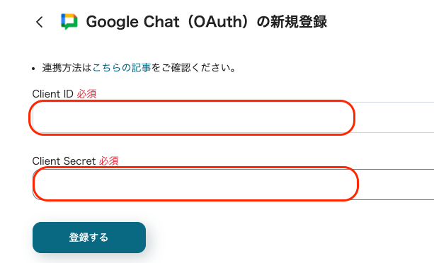 「Client ID」と「Client Secret」を入力し、「登録」をクリックしてください。