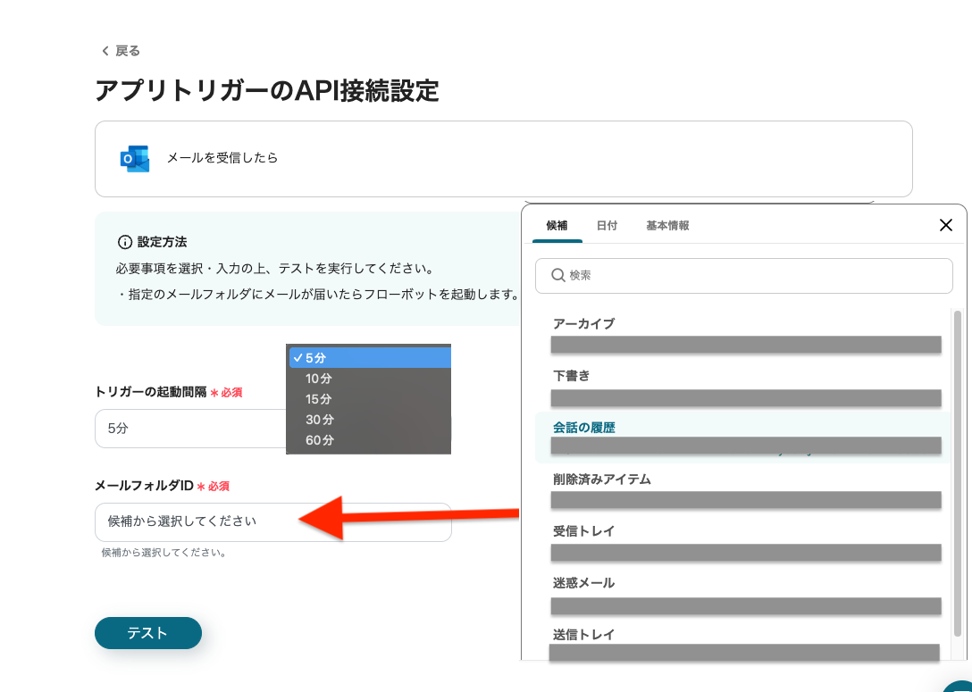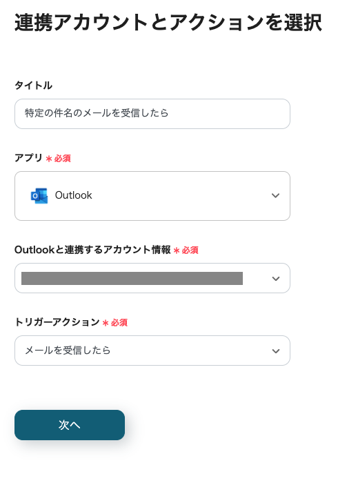 次に、Outlookのトリガーを設定します。