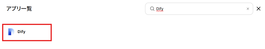 検索窓にDifyと入力し、表示された候補から「Dify」を選択します。