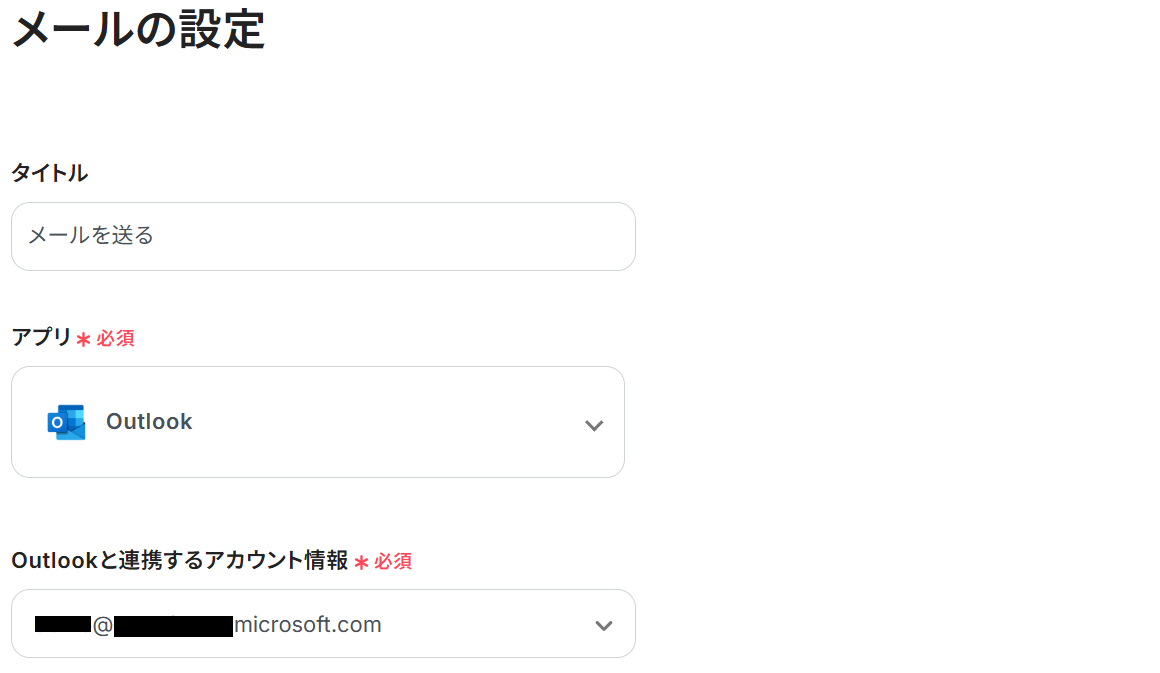 メールの詳細設定をしていきます。まず連携するアカウントが正しいか確認してください。