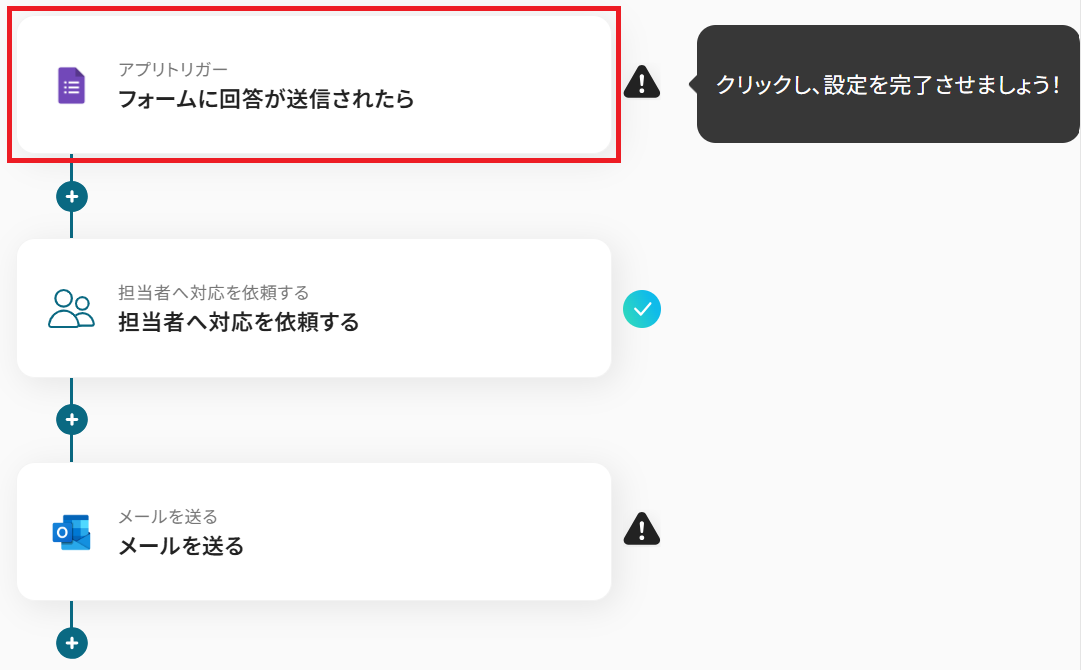 それではここから代表的な例として、Googleフォームに回答があった際に、担当者にメールチェックを依頼し、確認後にOutlookからメールを自動送信するフローを解説していきます!