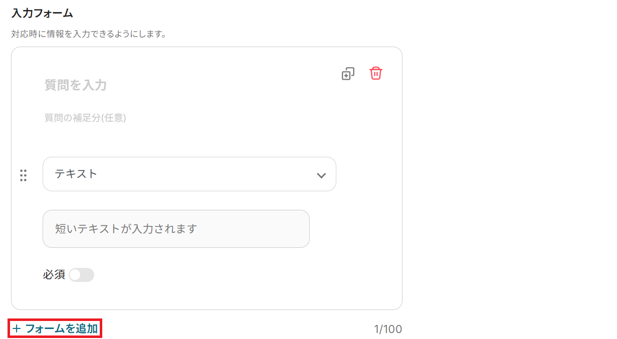 さらに「+ フォームを追加」から入力フォームを追加することもできます。