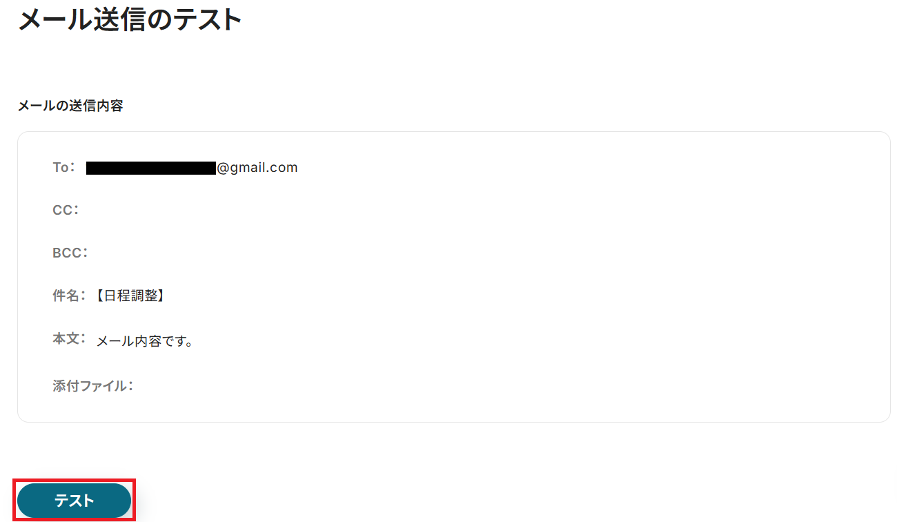 「次へ」をクリックするとメール送信のテスト画面になります。