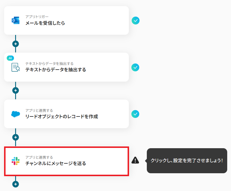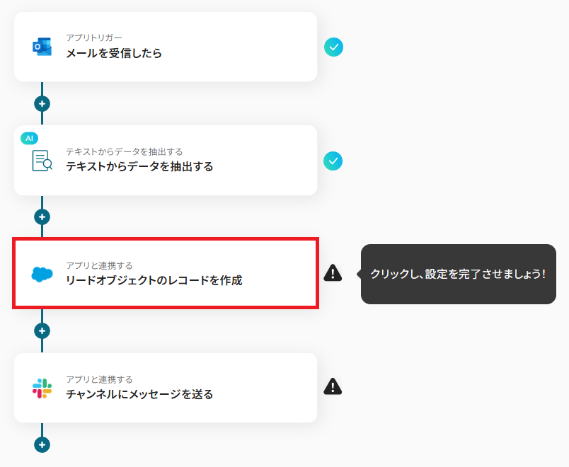 ・1つ目と2つ目のオペレーションを設定した後、「アプリと連携する リードオブジェクトのレコードを作成」をクリックします。