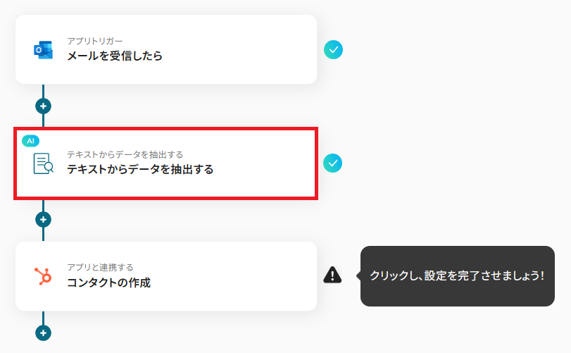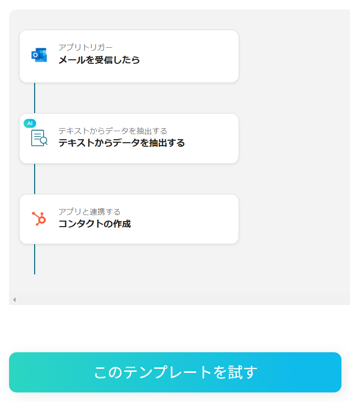 次に、メールの署名情報からHubSpotのコンタクトに登録する情報を抽出する設定を行います。