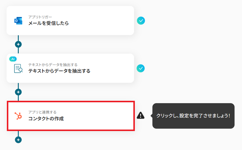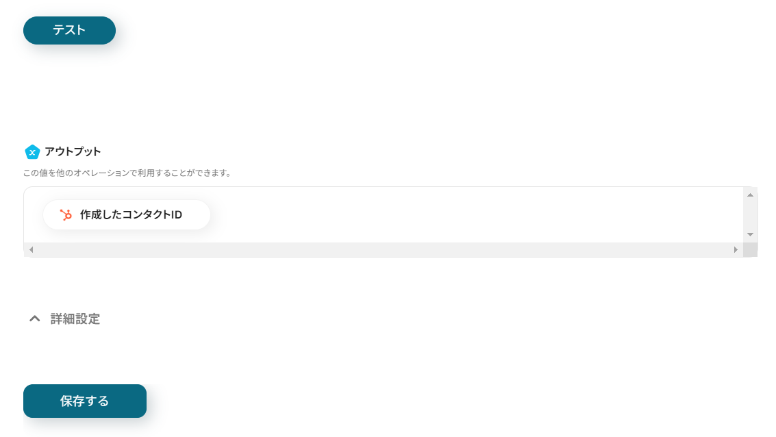 最後に、HubSpotでコンタクトを作成する設定を行います。