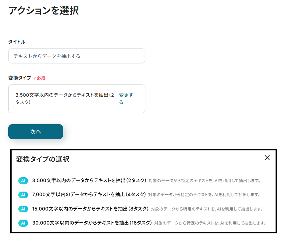 ※テキストを抽出するオペレーションの詳細は、こちらのヘルプページを確認してください。