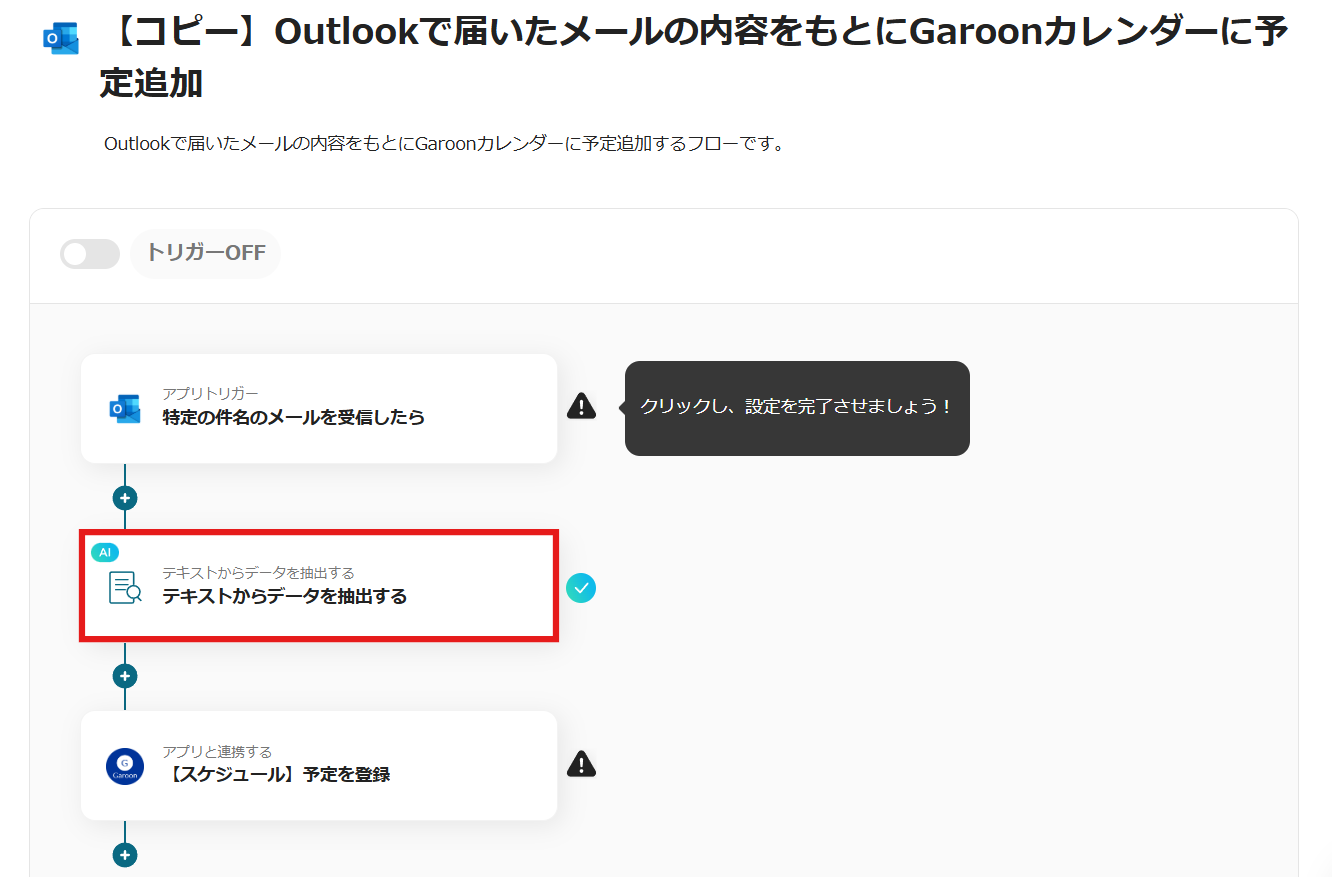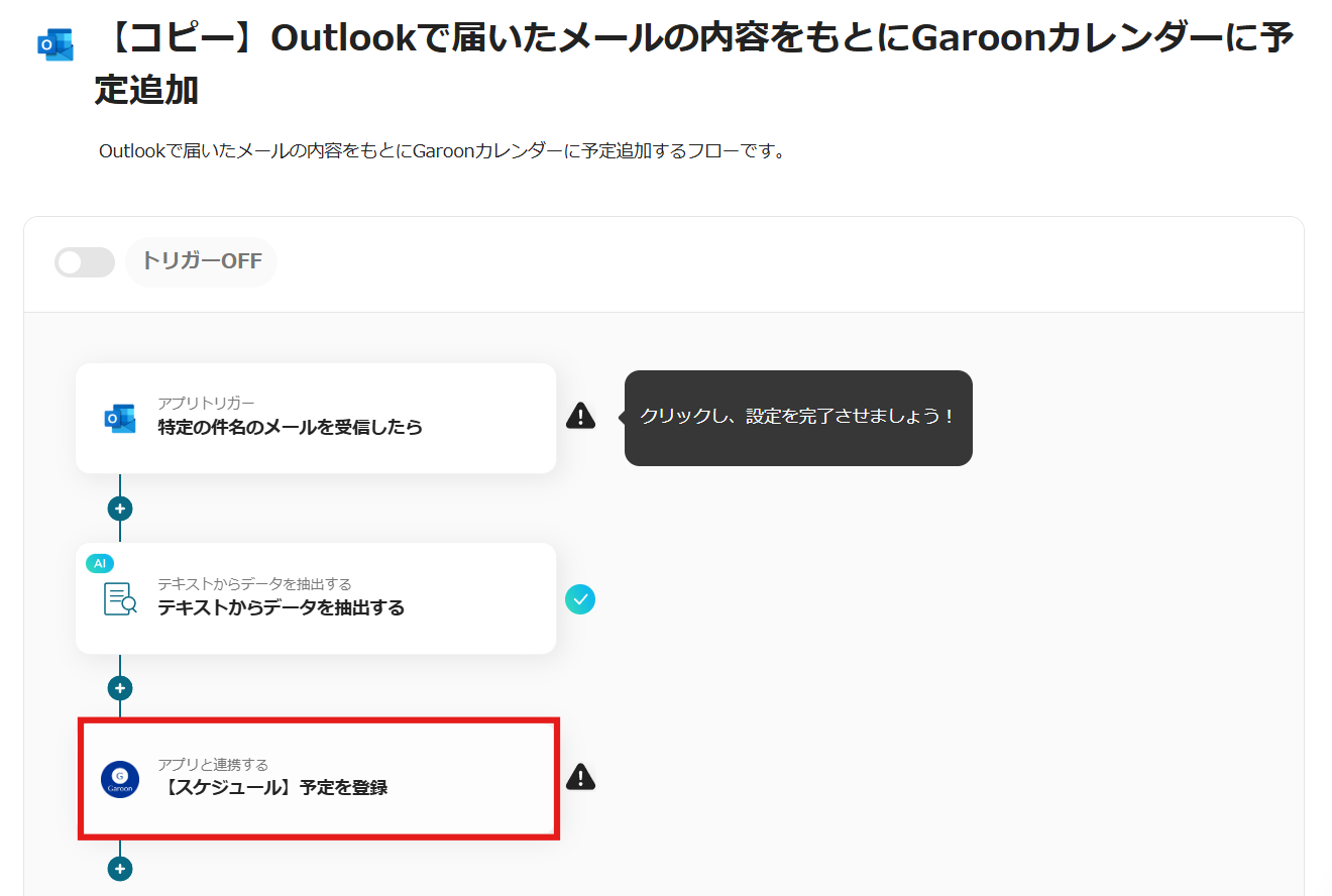 「【コピー】Outlookで届いたメールの内容をもとにGaroonカレンダーに予定追加」をクリックします。
