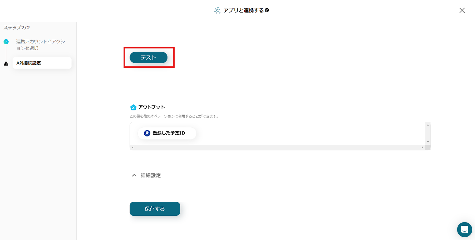 テストボタンを押し、青く「テスト成功」と表示がされたら保存を押しましょう。