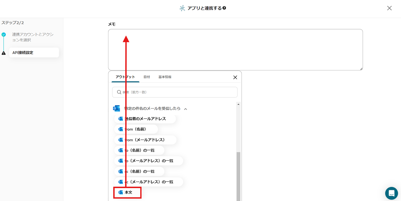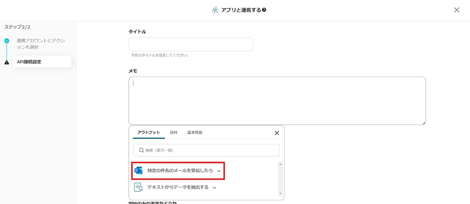 まず、Outlookにメールが送信されると、指定した文字列が件名に含まれている場合のみOutlookのAPIを利用し、メールのデータを取得します。