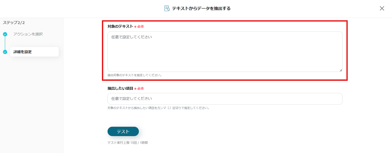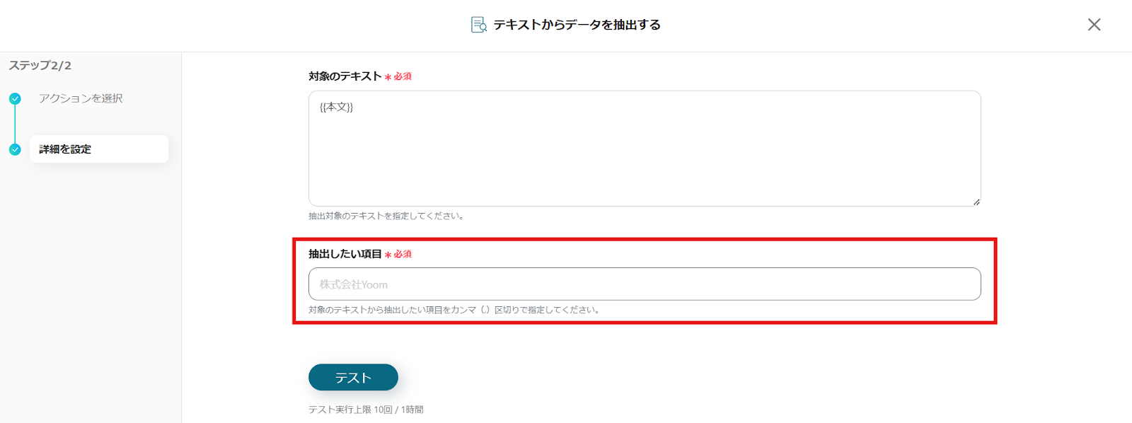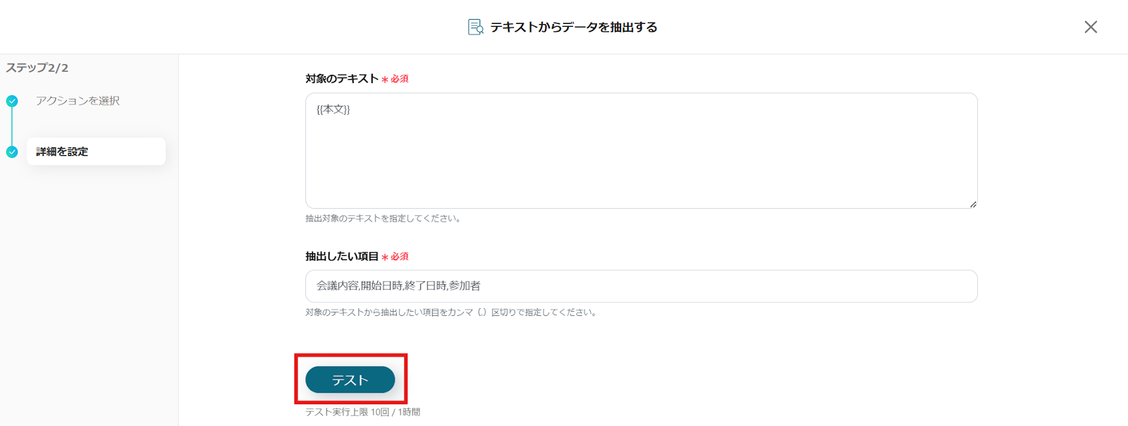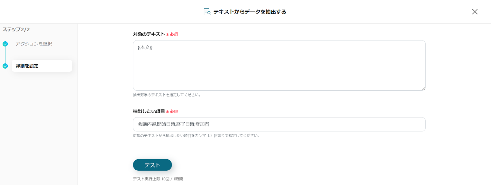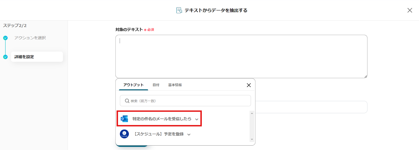 ※「テキストからデータを抽出する」は有料プラン限定のアクションとなります。