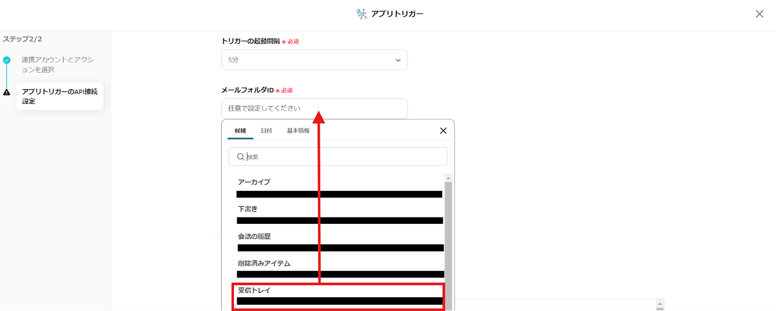 ボックスをクリックすることでフォルダが一覧表示されるため、選択して設定しましょう。
